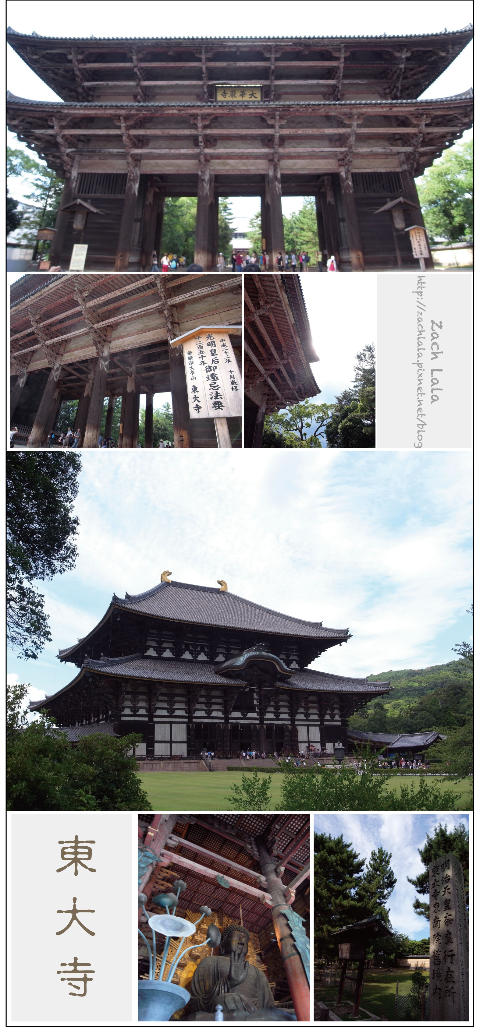 東大寺:東大寺是世界最大的木造建築,從興福寺一路走過來都非常舒服,唯獨路上會有很多的鹿圍繞著人群要東西吃,有的還會用頭上的角頂人,兇的很,所以對於跟鹿群的互動還是要小心一點哦!東大寺裡有一尊莊嚴的大佛,這尊大佛高有15米以上,很多人都在這邊祈願。