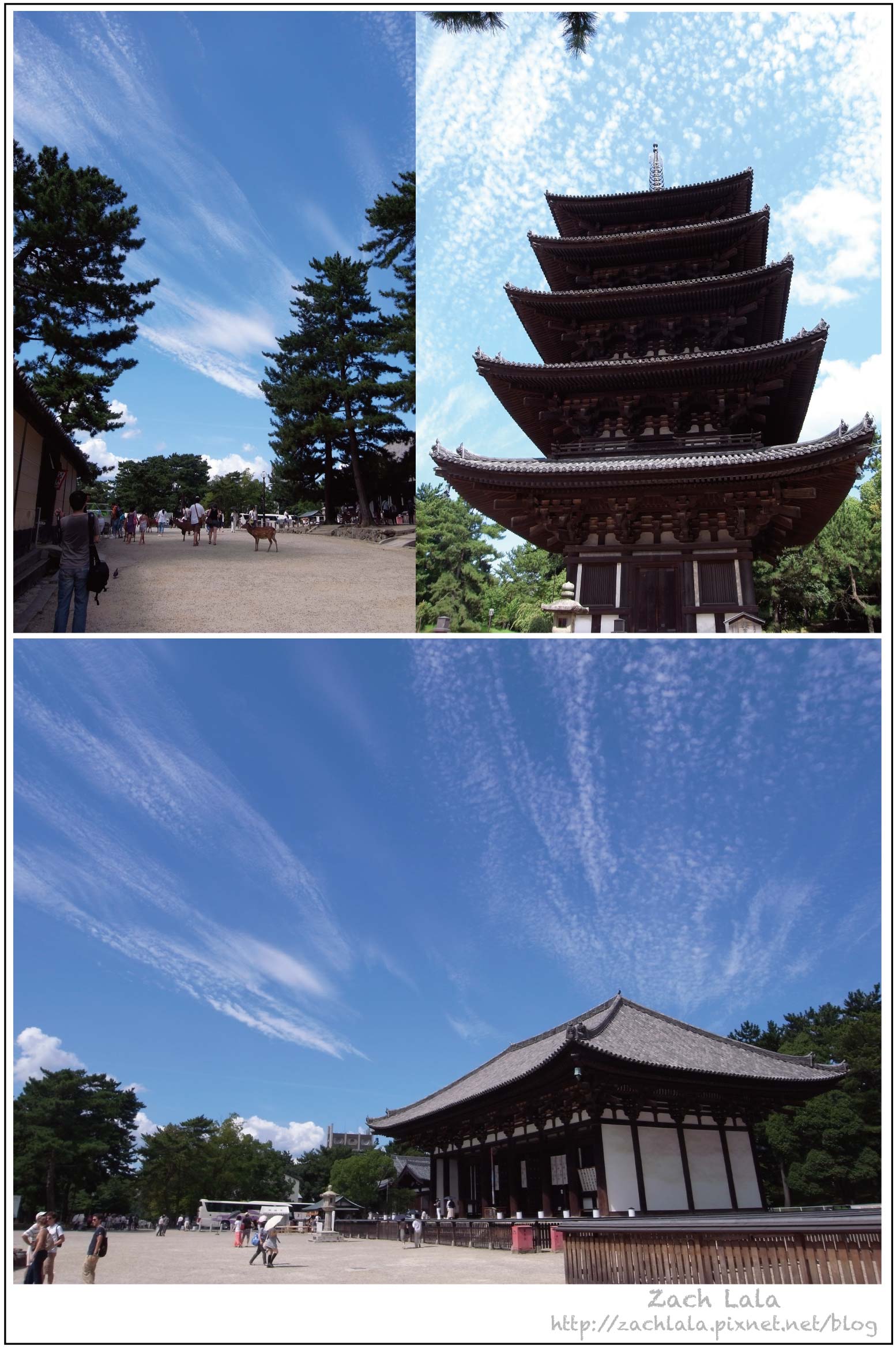 猿澤池:天氣很好,拍起來就像是池中有天空的倒影一樣。這個池沒有很大,池面與一大片的藍天白雲構成一幅自然的美景,一走到這裡有一種時間頓時停止的感覺,忍不住會停下來享受這片刻寧靜。